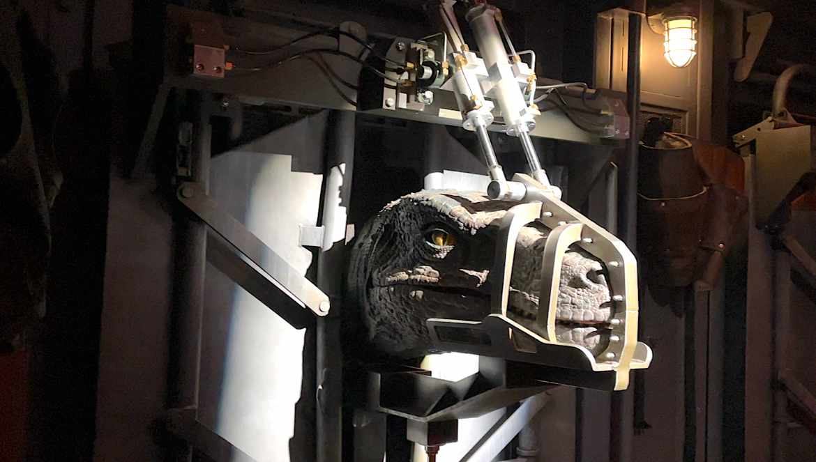 En la fila verás raptors, con movimiento en los ojos gracias a la técnica de Animatronics, una sala de observación del lanzamiento, en la que a través de varias ventanillas ves el lanzamiento de la montaña rusa que va a 70 millas por hora, seguida una manada de raptors, al Dr. Wu, que encontrarás en la Sala de Entrenamiento y a Claire Dearing y Owen Grady con algunas advertencias.