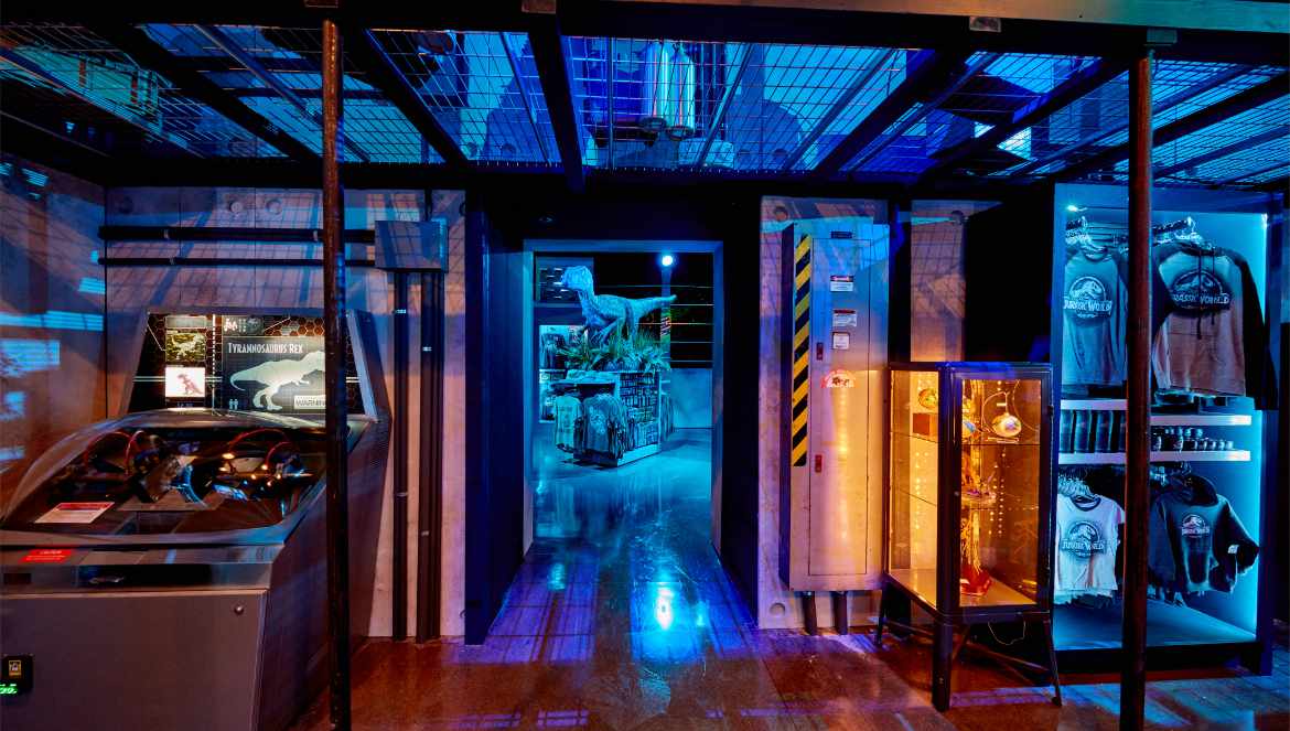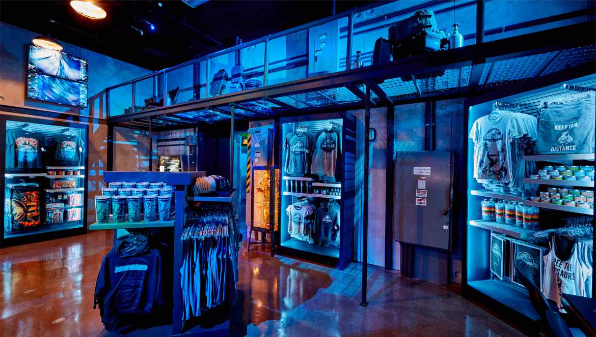 - Cuarto de control: La primera sala transportará a los visitantes al cuarto de control de Jurassic World VelociCoaster, donde analizarán los signos vitales de una variedad de dinosaurios mientras compran nuevos productos centrados en la nueva y emocionante experiencia de montaña rusa.