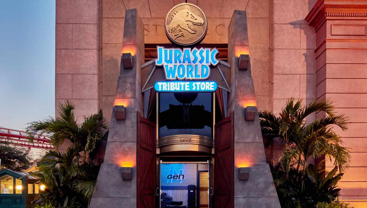 VelociCoaster, que está en el parque de Islands of Adventure, es la primera atracción dedicada a la franquicia de Jurassic World y la Tienda Tributo tendrá salas de temáticas inspiradas en las películas taquilleras, que incluyen el cuarto de control (Control Room), área de los raptors (Raptor Paddock) y el laboratorio (Lab).